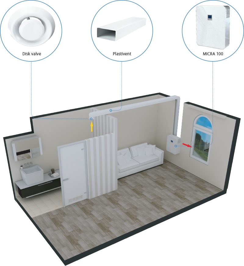 | Lineup Vents Micra 100 | Rated power, W | Maximum airflow, m3/h | Sound pressure level LpA at 3 m, dB(A) | Heat recovery efficiency, % | Heat recovery efficiency, max, % | Enthalpy heat exchanger | Preheater | Reheater | Control | Mounting |